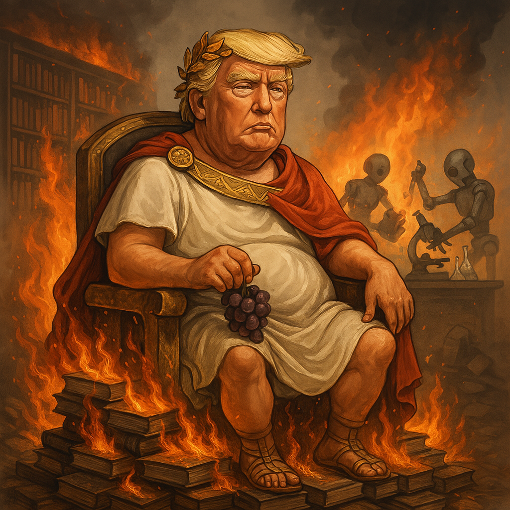 La tragedia no acaba ahí. Está promoviendo la eliminación sistemática de contenido científico que sostiene postulados que no le agradan, como el del cambio climático. Ha puesto contra las cuerdas a algunas de las universidades más prestigiosas del mundo por permitir protestas contra el genocidio israelí. Silencia, desmantela, censura.