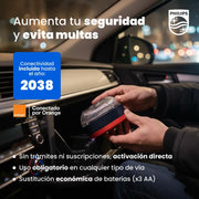 Porque combina calidad PHILIPS legendaria, conectividad DGT 3.0 con red Orange, 12 años de datos incluidos y sistema de pilas siempre operativo en un dispositivo compacto y fácil de usar. La certificación IP54, el imán de neodimio, la visibilidad 360° homologada y el respaldo de una marca con más de 130 años de experiencia la convierten en una de las mejores opciones del mercado.