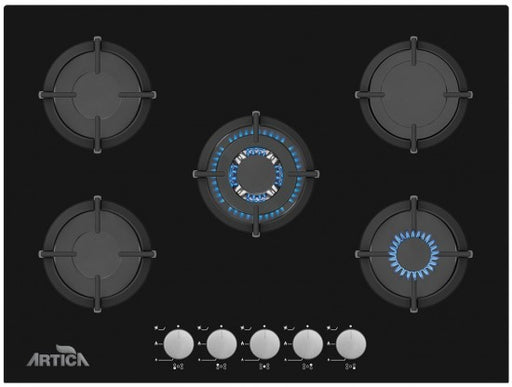 Encimera de Gas ARTICA ACG7050 5 Fuegos Cristal Negro 70cm con Quemador Wok