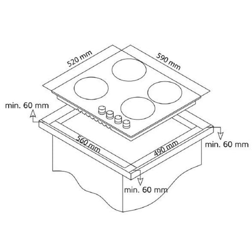 • Encimeras de 56-60cm: Tamaño compacto con 2-3 fuegos, ideal para apartamentos, estudios o parejas