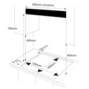 Con unas dimensiones de 600 x 510 x 100 mm, esta encimera se integra perfectamente en huecos estándar de 560 x 480 mm. Su instalación es rápida y compatible con la mayoría de muebles de cocina del mercado.