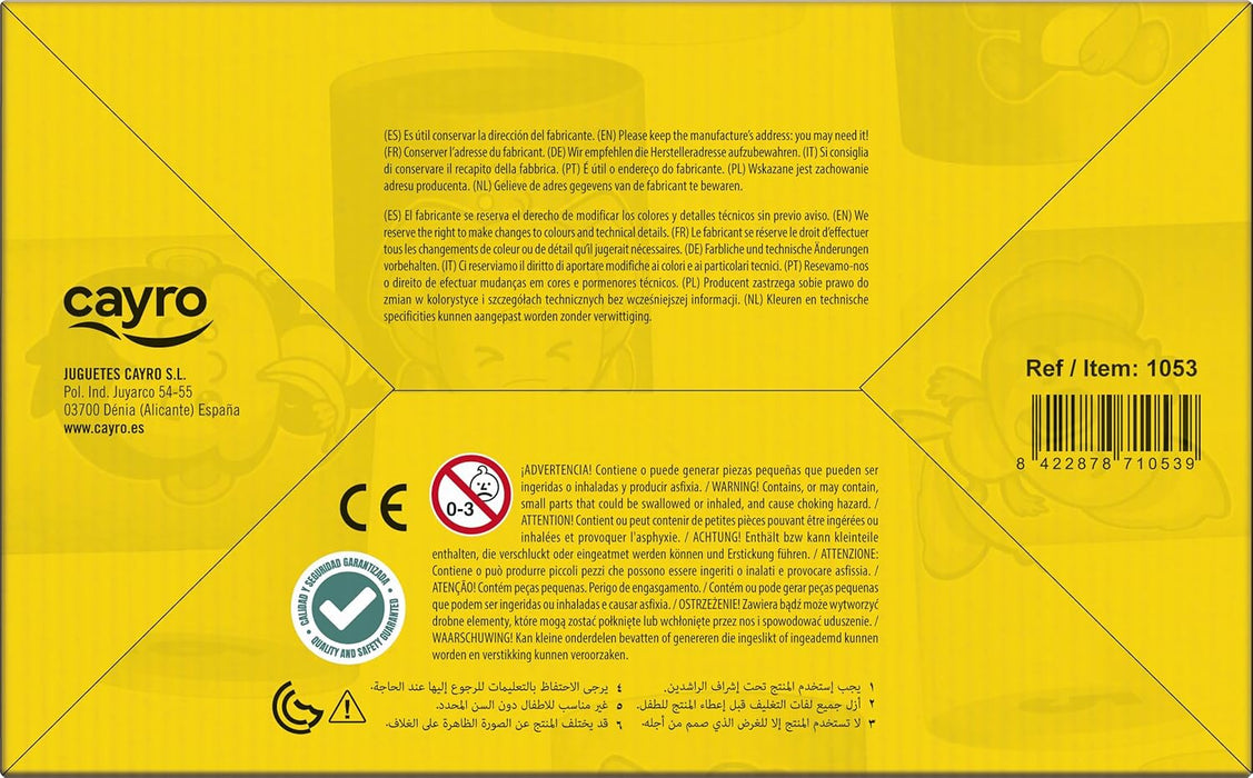 ¡Diversión asegurada con el Juego de Latas de Cayro! Este clásico juego de feria es perfecto para desarrollar la puntería y la coordinación en niños y adultos. Apunta, lanza los sacos y derriba todas las latas decoradas con divertidos animales. Ideal para jugar en interiores y exteriores, este juego garantiza horas de entretenimiento para toda la familia.