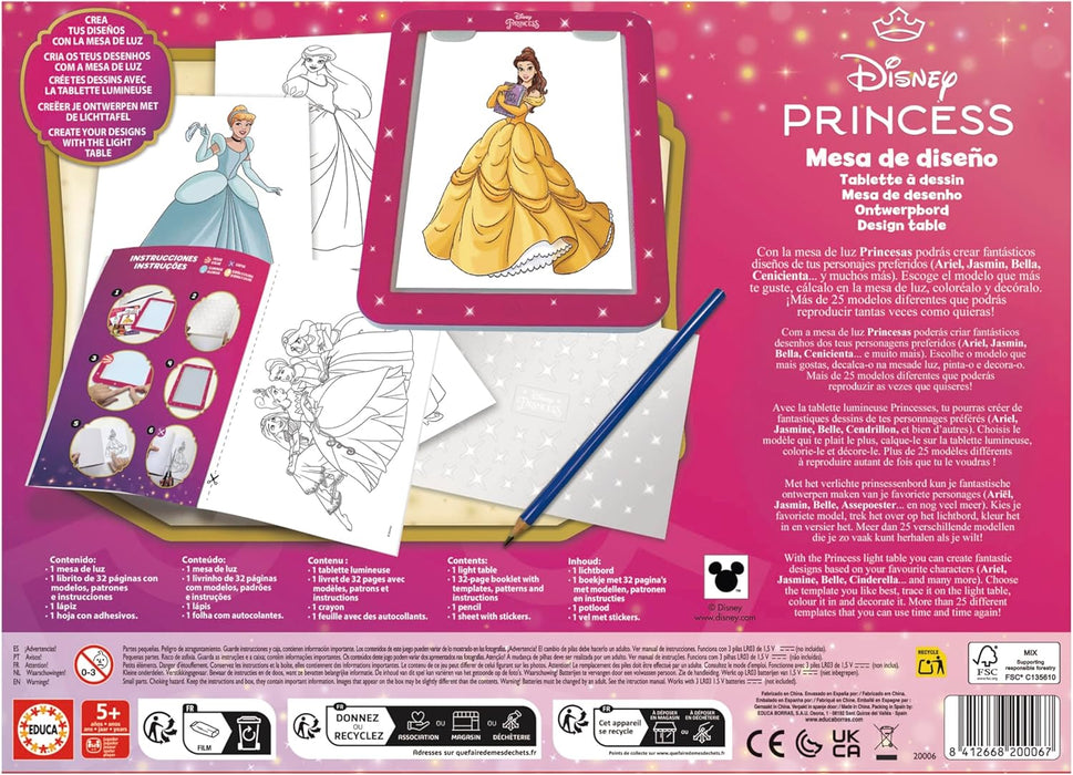 Educa Borrás es una marca española con más de 125 años de experiencia en la creación de juegos educativos y creativos. La Mesa de Luz Princess refleja ese compromiso con la calidad, la seguridad y el valor educativo.