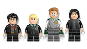 4 minifiguras LEGO®: Harry Potter™ y Draco Malfoy™ (con varitas y hechizos mágicos), además de Gilderoy Lockhart™ y Severus Snape™.